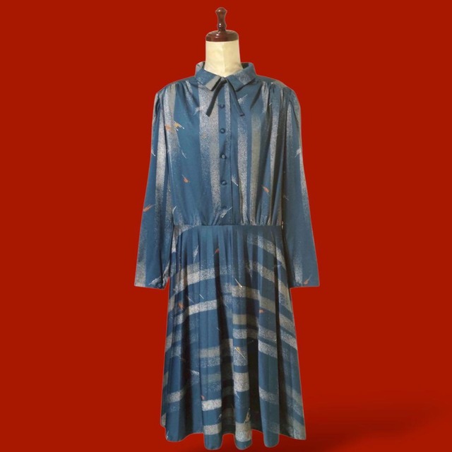 おフランス製の上品なブルーに絶妙なパターン、お上品な襟元、フワッと広がる美しいスカートライン。 ひと目でヨーロピアンの風格分かるこのデザイン、まさに“一点もの”の特別感ね。 ひと味違う繊細な柄づかいも大きな魅力♡ ブルーグレーをベースに、アーティスティックなラインや小さな絵画のようなアクセントがほどこされていて、まるで一枚のアートをまとっている気分よ。 ☀︎細ベルトでウエストマークしてメリハリ美人♡ ☀︎白やシルバーの小物を合わせて、透明感エレガンスコーデにうっとりよ~ ☀︎レザージャケットを羽織ればパリジェンヌ風に大変身! あなたのクローゼットに“おフレンチ革命”起こしちゃいましょ! ◎サイズ感も抜かりなくチェックよ *平置き実寸(cm) 肩幅 36 身幅 48 ウエスト 78 袖丈 55 身丈 110 ※着用トルソー:9号(B81 / W60 / H85) サイズ感の目安にしてちょうだいね。 ◎状態チェックも大事よ、ホントに 古着としてのお出ましだけど、目立つダメージも汚れも見当たらないのよ。 これからも長く愛される準備はバッチリできてるわ。 ◎素材、気になるわよね? レトロワンピース定番のポリエステル素材よ! 他に気になるところがあれば、遠慮しないで質問してちょうだい。全部答えるわ♡ *❀٭❁⃘*.゜❀·°⟡.· ⎯⎯⎯⎯⎯⎯⟡.·❀·°✿.*・ ° Durian vintageでございます。 ご覧いただきありがとね。 ドリアンは、ただの古着屋じゃないのよ。 アナタの“運命の一着”と出会ってほしくて、毎日心込めてお届けしてるの。 さて、ポチっとする前に ◆◇ 少しだけお願い申し上げます ◆◇ ヴィンテージというものは、時を重ねてこその味わい。多少の傷・汚れ・香り、そのすべてが個性となります。 目立つダメージにつきましては写真ならびに説明文にてしっかりご案内いたしておりますので、どうぞご安心なさいませ。 トルソーは9号(B81 / W60 / H85)を使用しております。 平置きの採寸も掲載しておりますので、ご参考になさってください。 ◇ご返品・ご交換について 万が一何かございましたら、必ずご一報くださいませ。 サイズ違い、イメージ違い等によるご返品はご遠慮いただいております。 ◇発送について 通常は2日以内の発送を心がけておりますが 万一遅れる場合には速やかにご連絡申し上げます。 圧縮梱包でお届けする場合がございますので、 お手元でふんわりとお戻しになってくださいませ。 ご質問も、ご購入も、心よりお待ちいたしております。 管理番号: