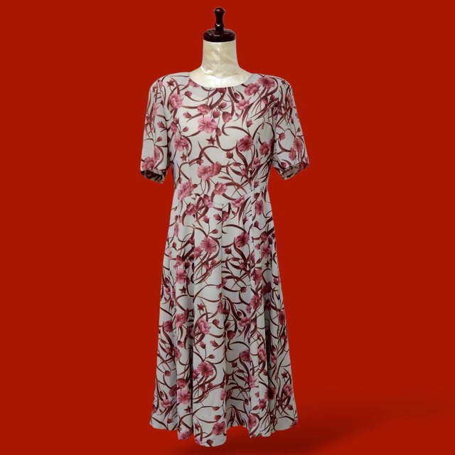 ◎昭和レトロ フェミニンワンピース 半袖花柄 ピンク ビンテージ
