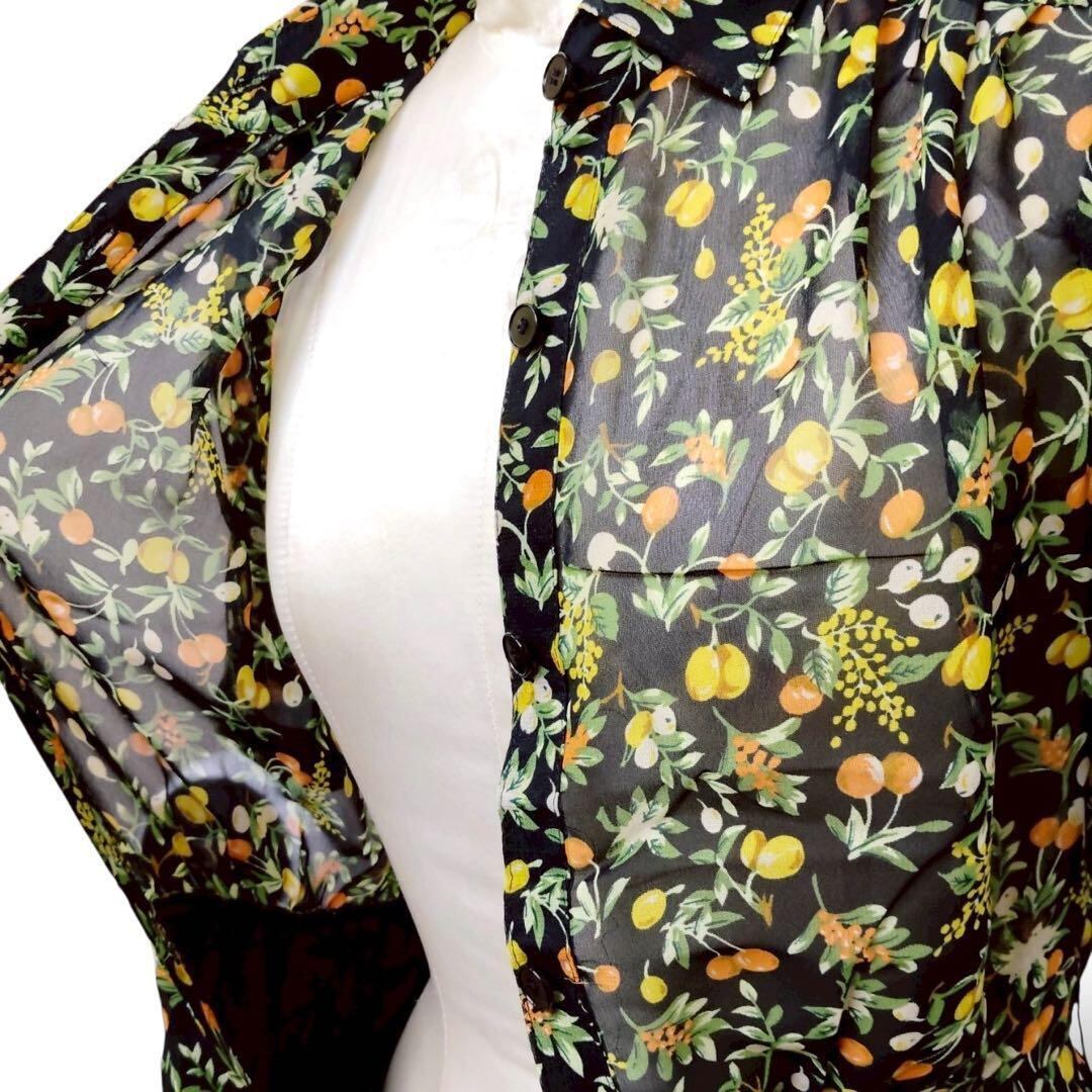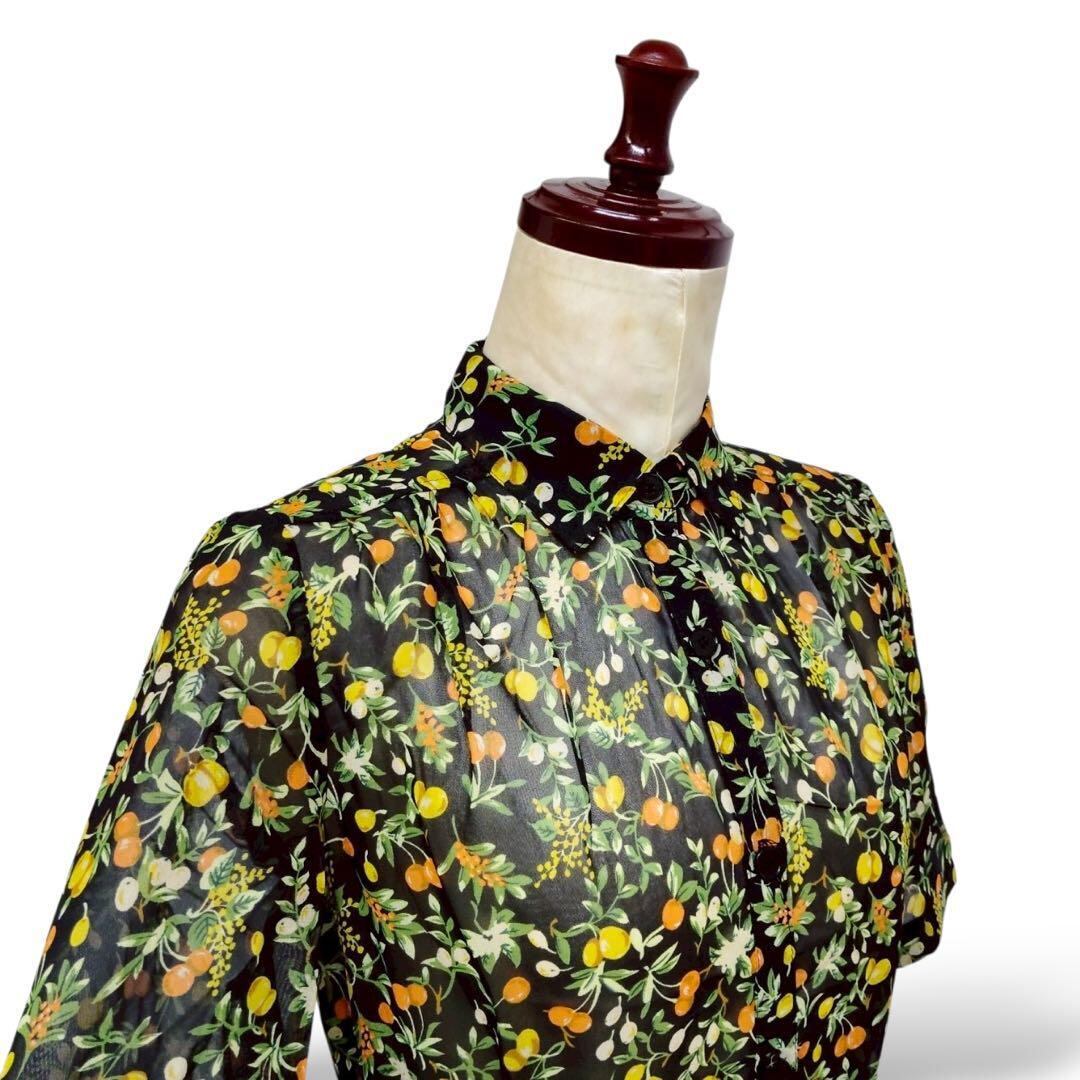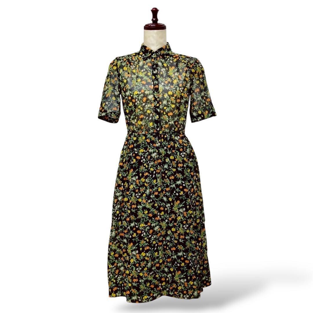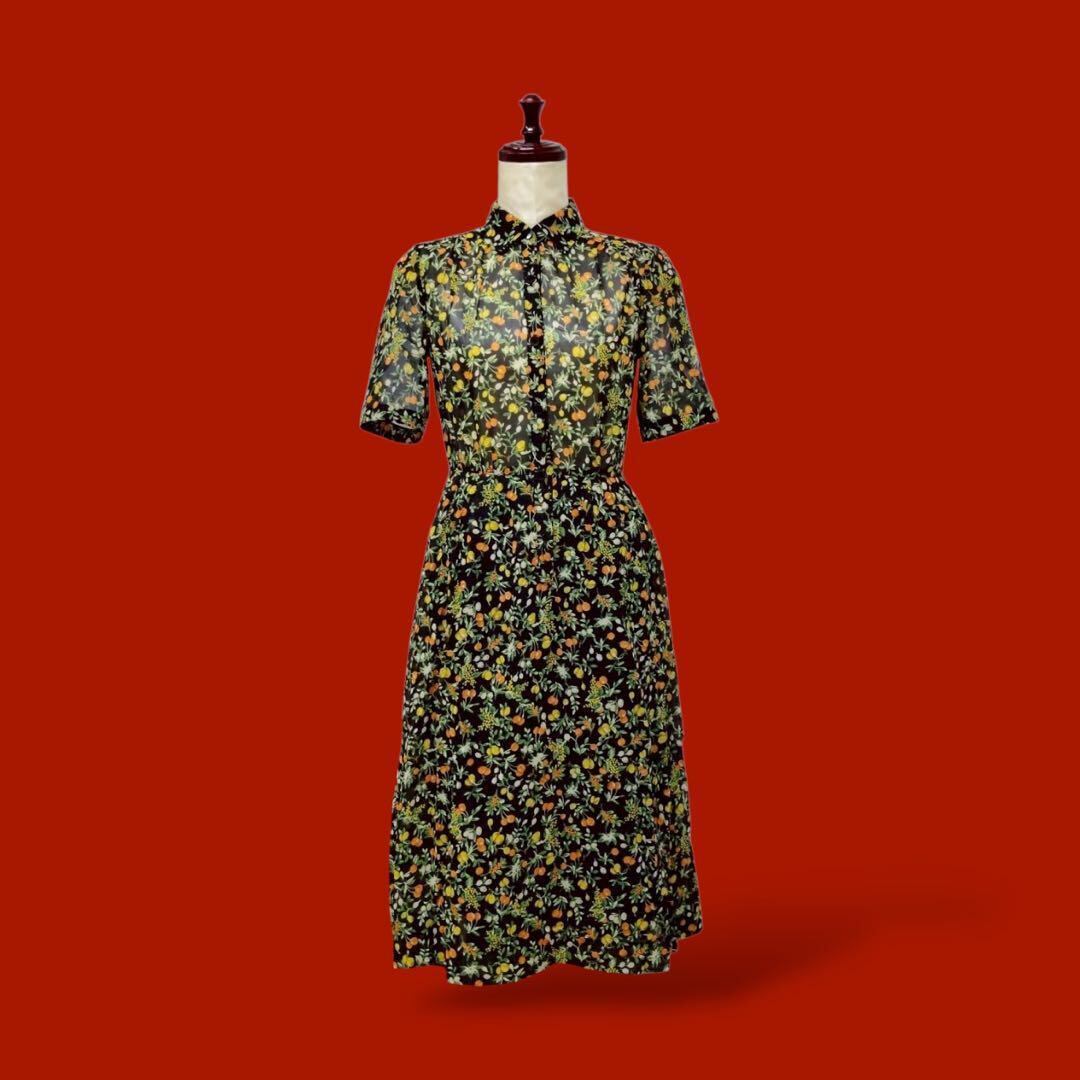 ◎果実×ブラック レトロヴィンテージ シャツワンピース 透け素材
