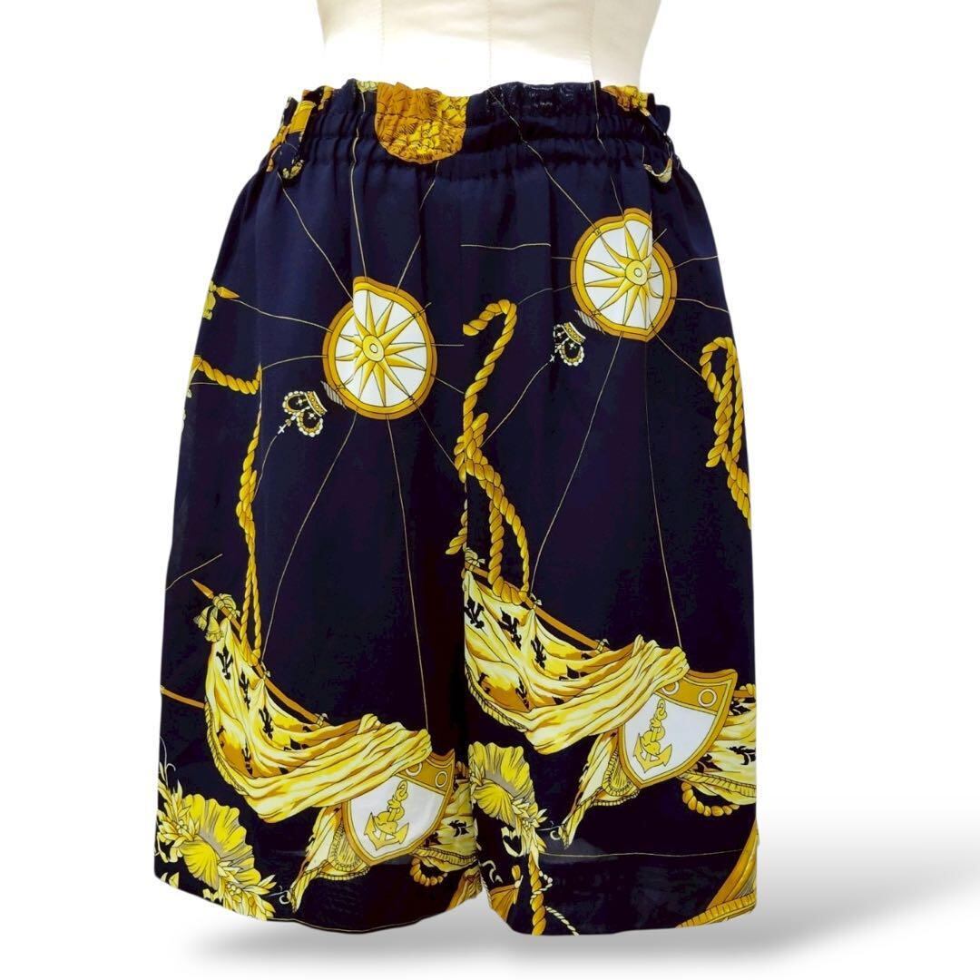 ◎バブリーマリン柄 ショートパンツセットアップ 80sネイビー×ゴールド存在感
