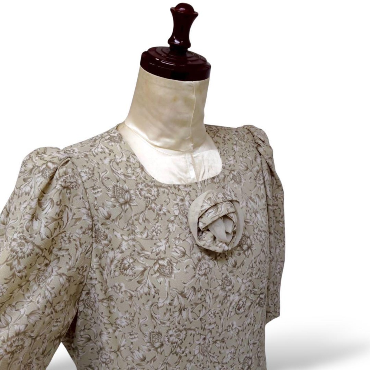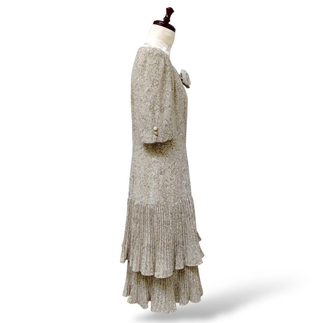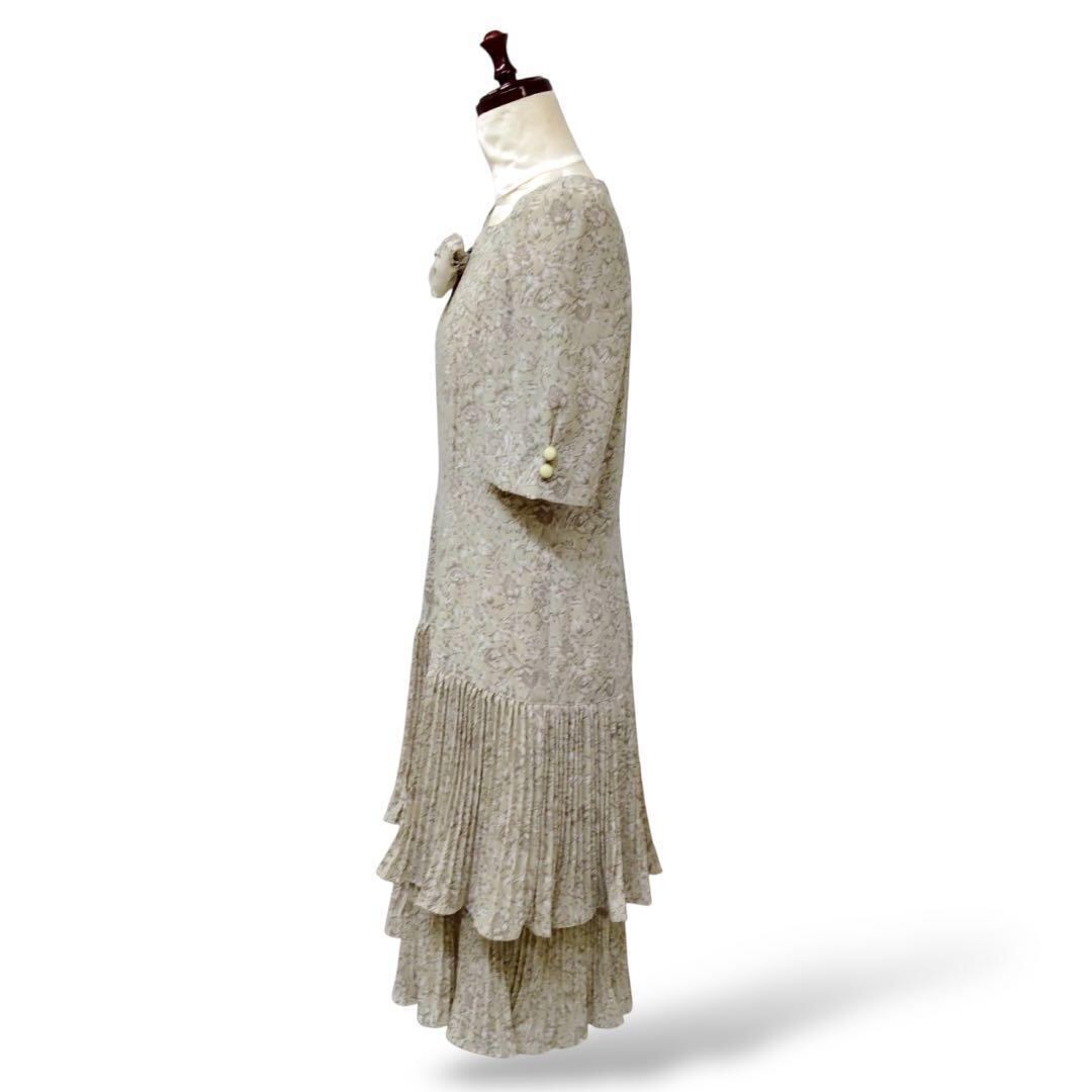 優しい色合いと品のあるフラワープリントがレトロクラシカルなワンピースでございます。