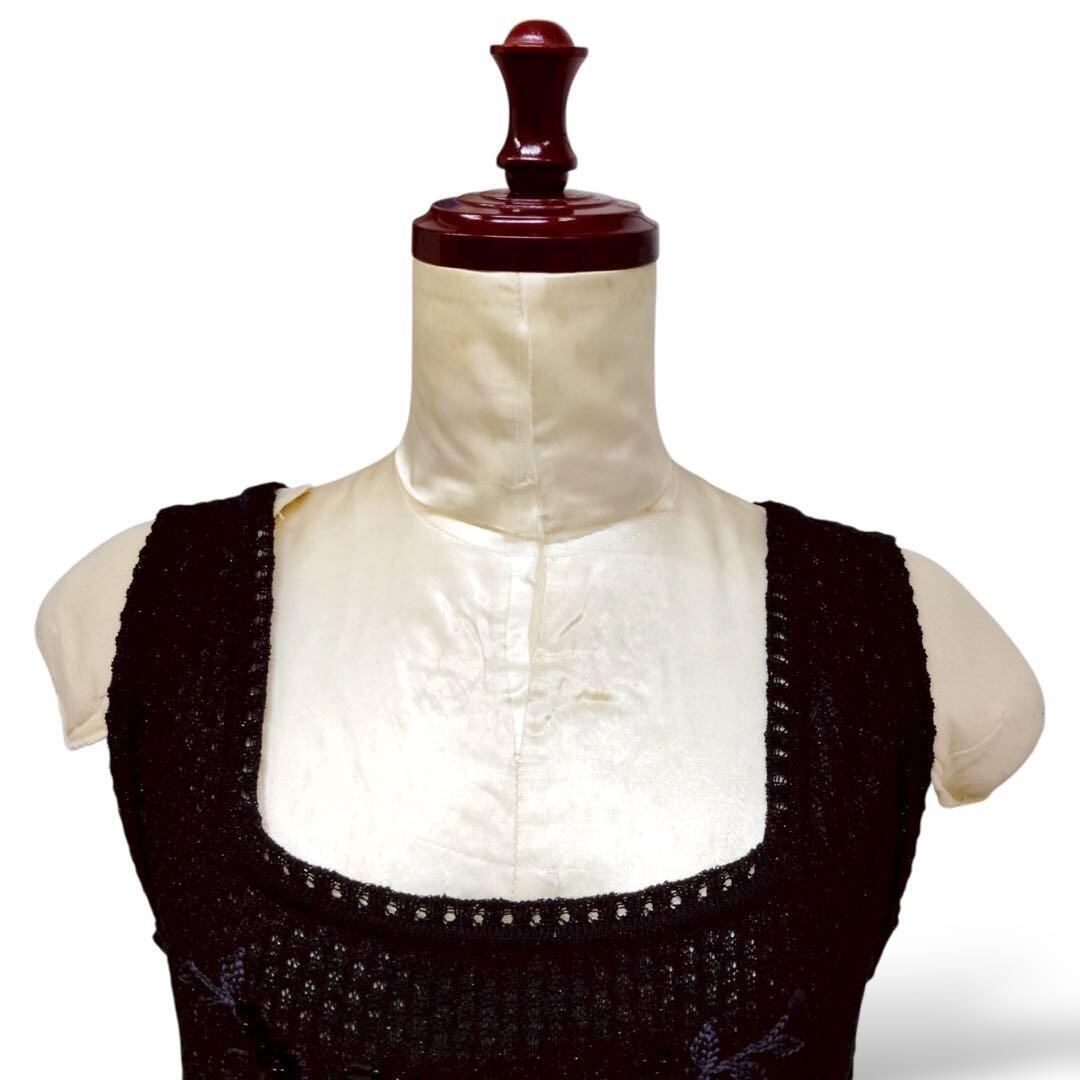 ◎ブラックニットワンピース ビーズ刺繍 透かし編み 日本製 vintage 美品