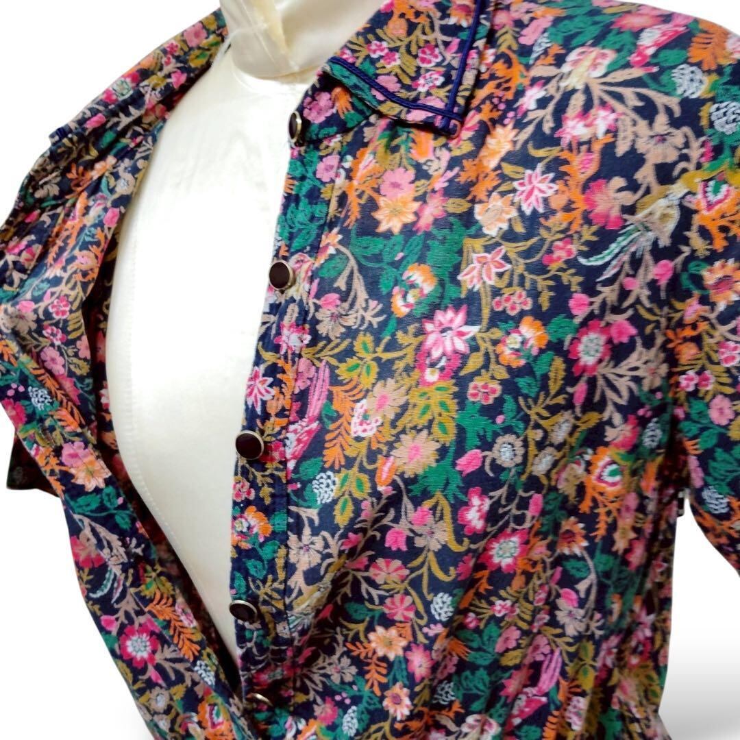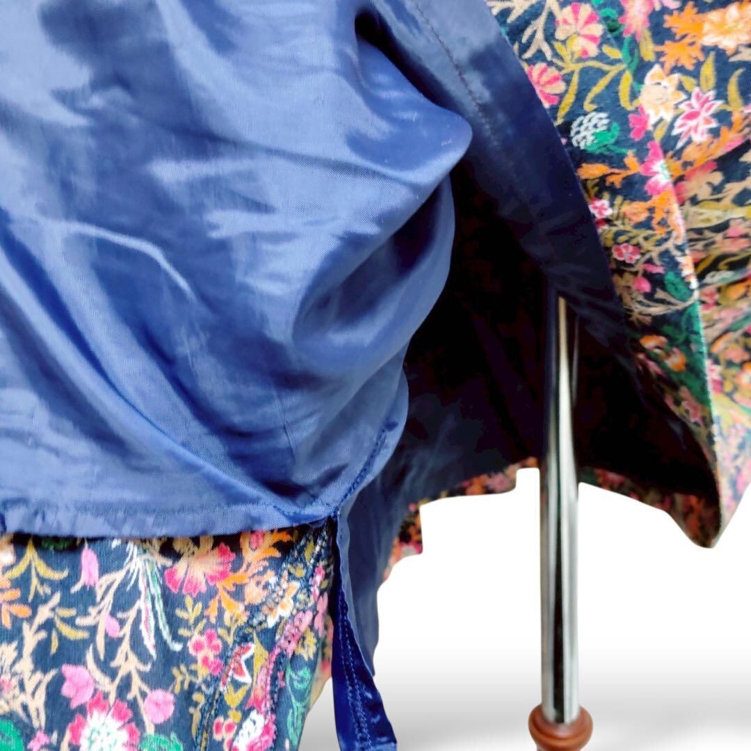 ピンク・パープル・グリーンが混ざった花柄で、昭和のおしゃれ番長感がたまらない!!