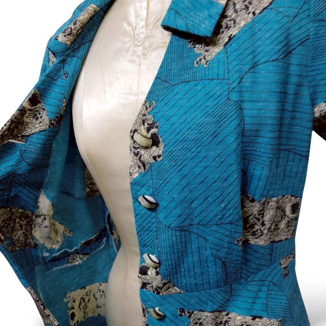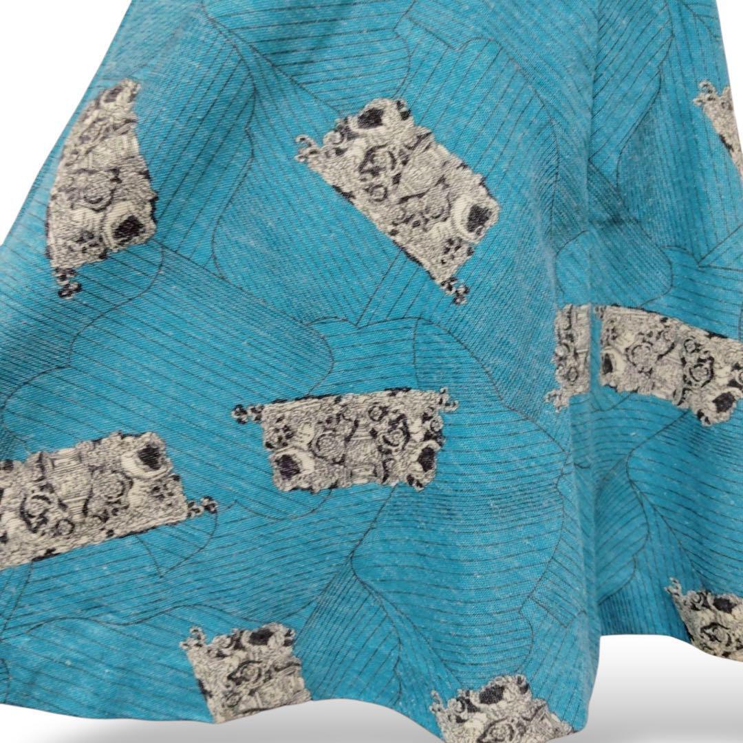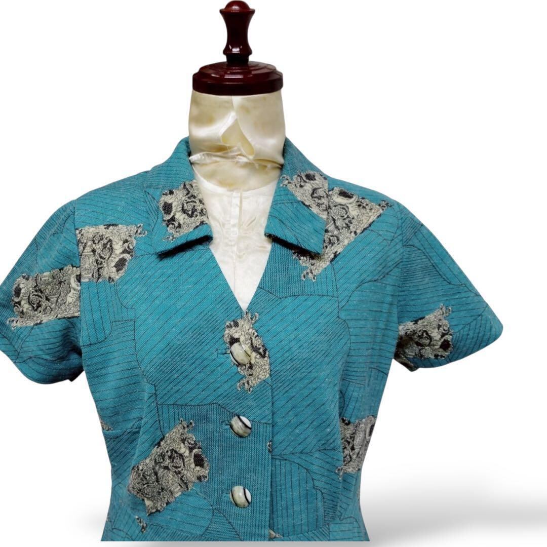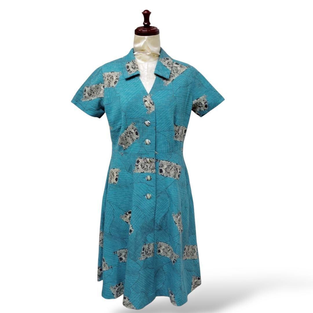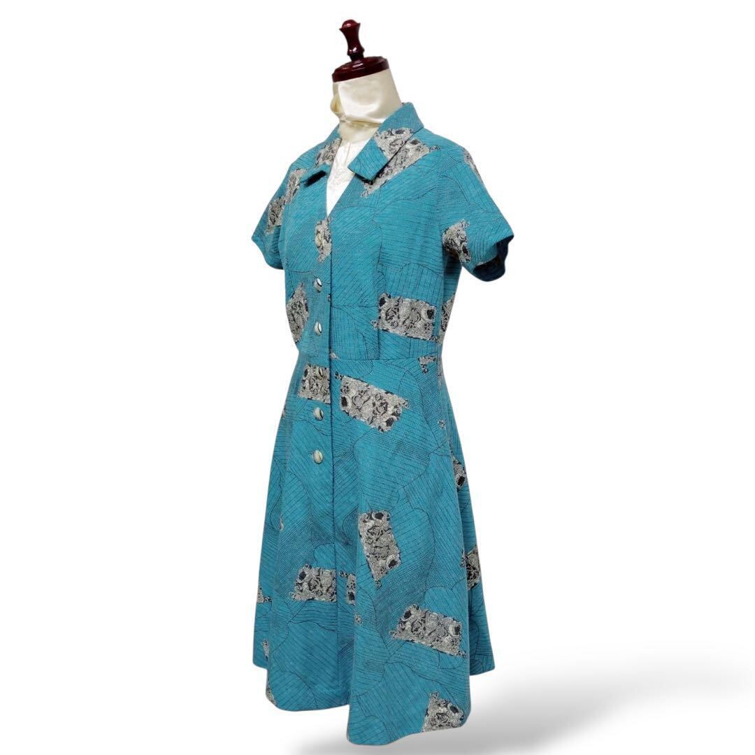 ◎ターコイズ レトロワンピース アート 個性派 解禁 半袖 フレア ヴィンテージ