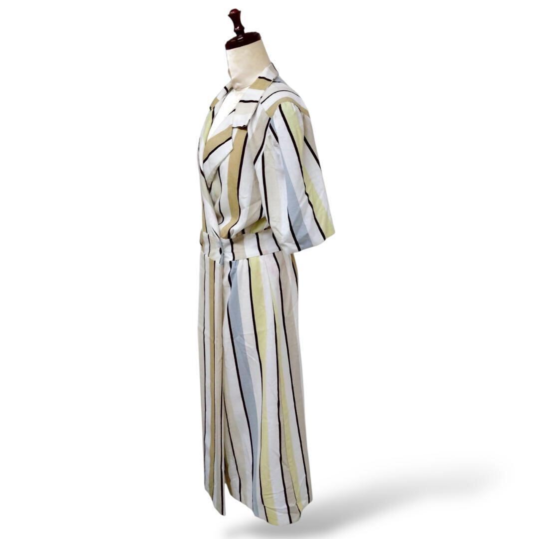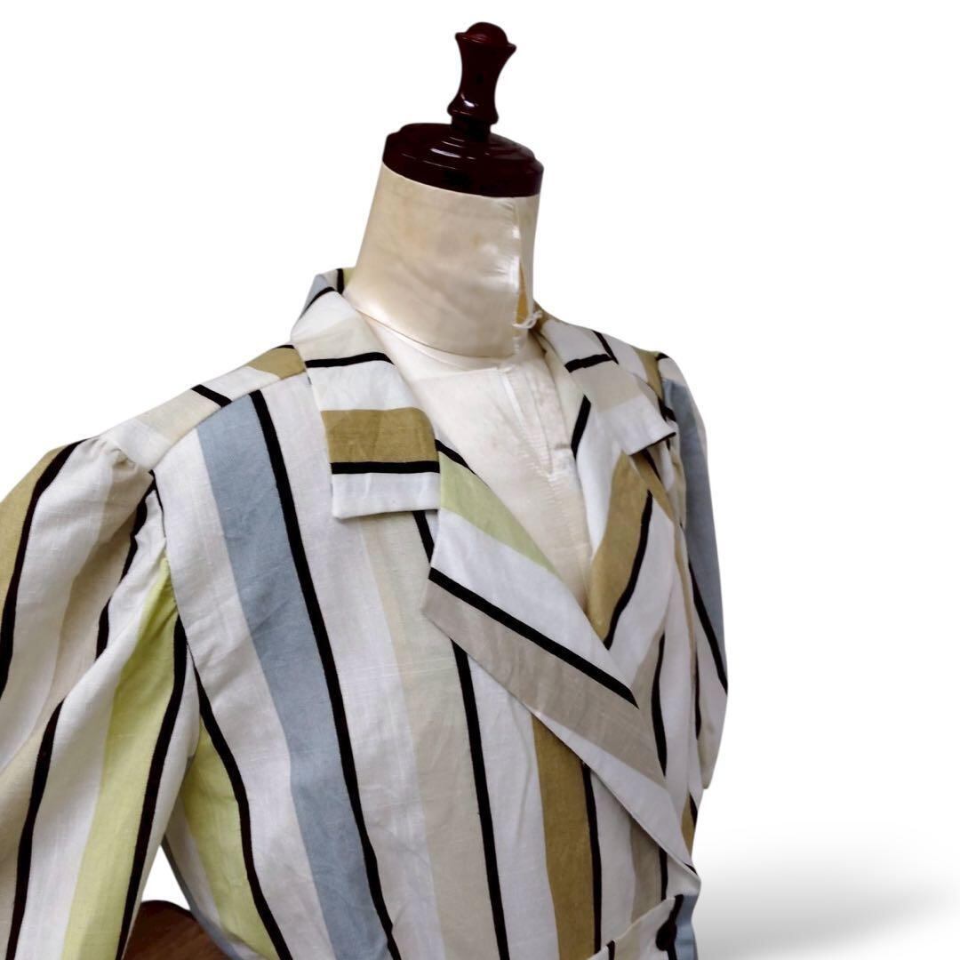 縦に流れるマルチストライプは、スタイルアップ効果抜群。淡い色使いが爽やかで、知的な印象もプラスしてくれるわ。