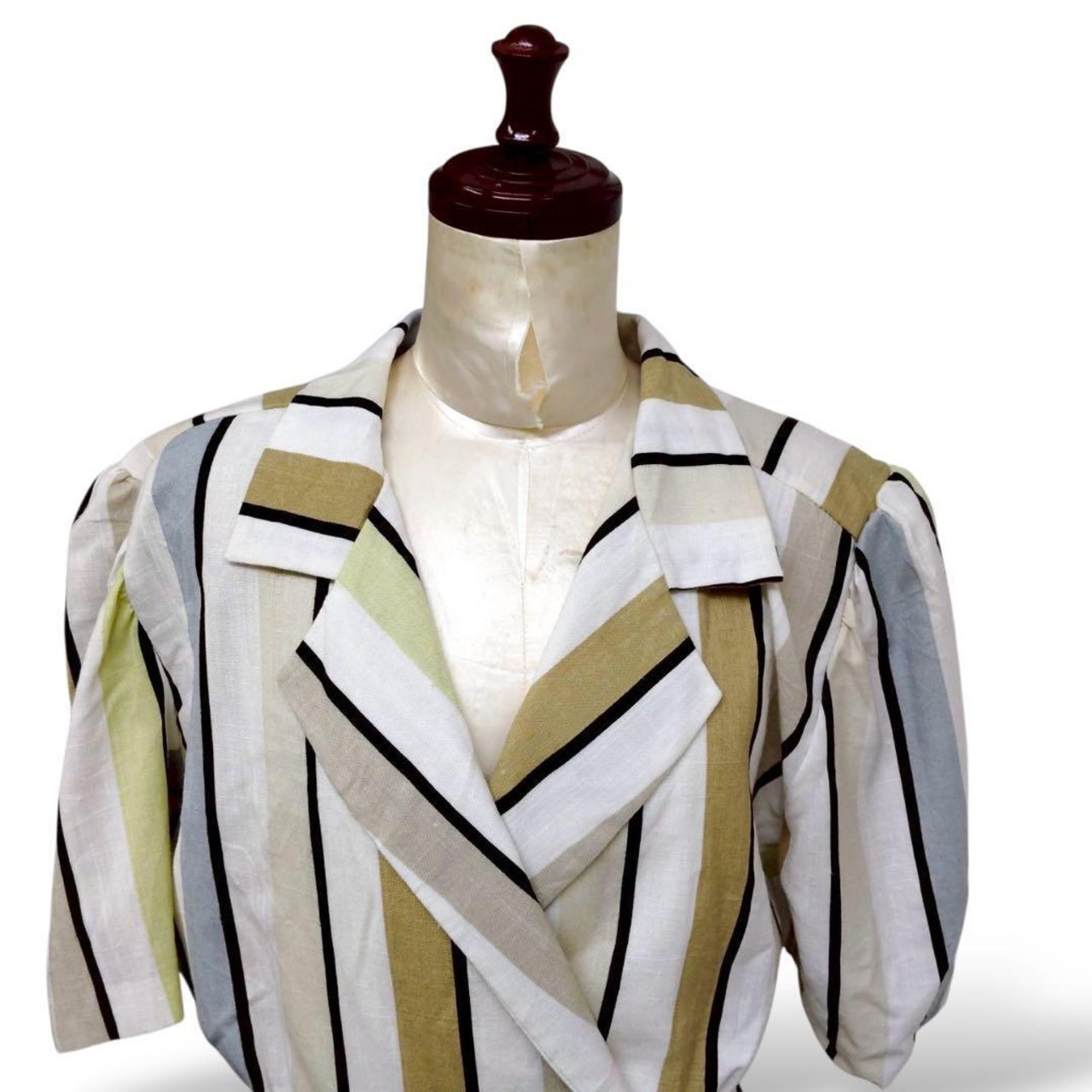 洗練されたストライプ柄が目を引くレトロワンピースよ。