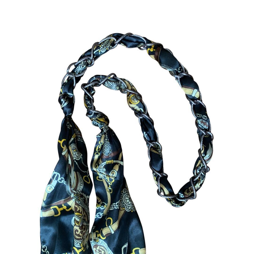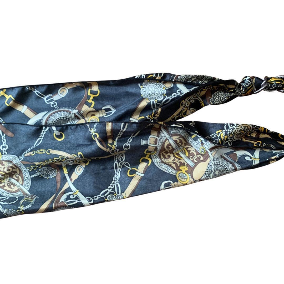 黒地にゴールドのチェーン柄がゴージャスで、巻くだけで一気にセレブ感アップ!