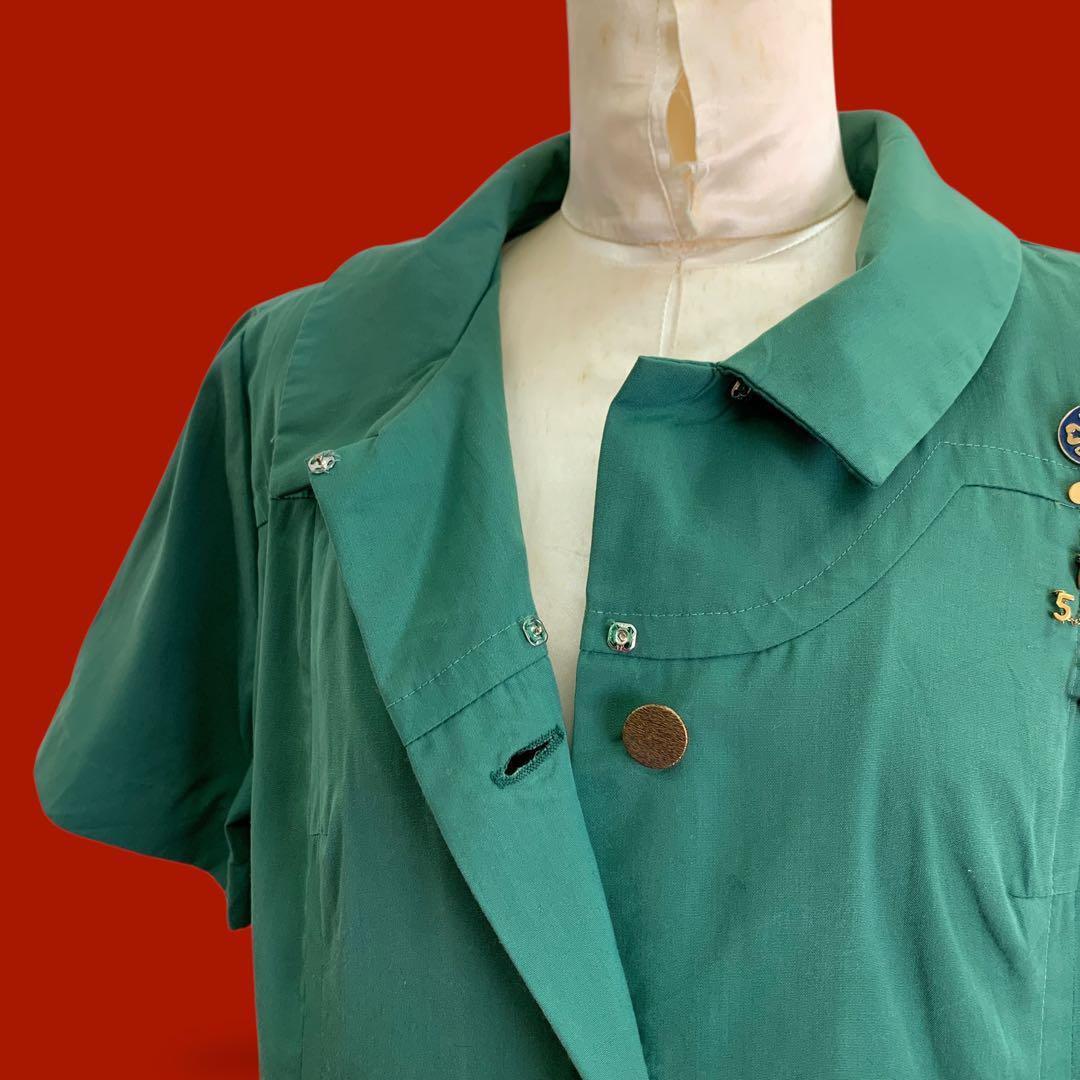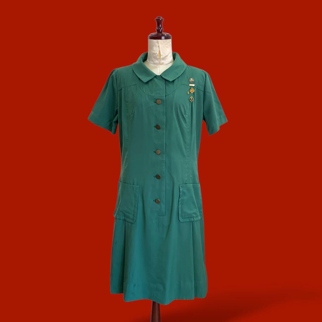 こちら、昔懐かしガールスカウトのユニフォームワンピースなの。しかもUSA製。