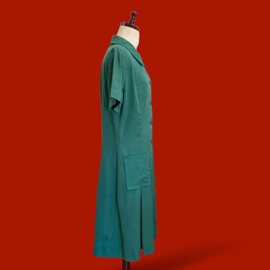このくすみグリーン、胸元のバッジ、クラシカルな襟…ぜーんぶ“あの時代”のキラキラを詰め込んだ、正真正銘の昭和レトロアイテムよ♡