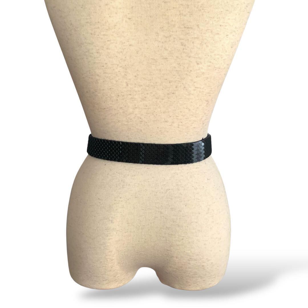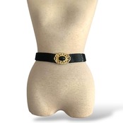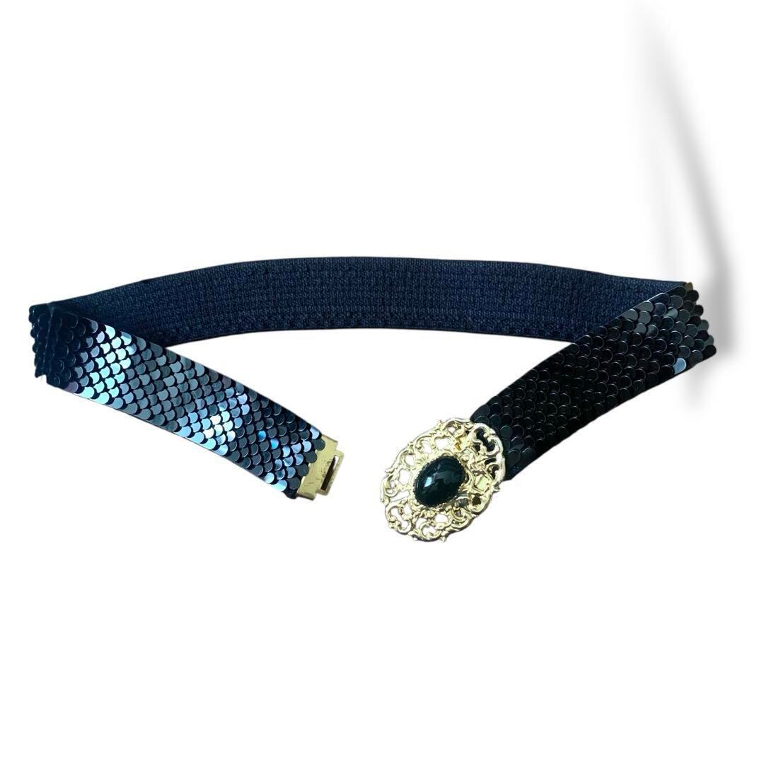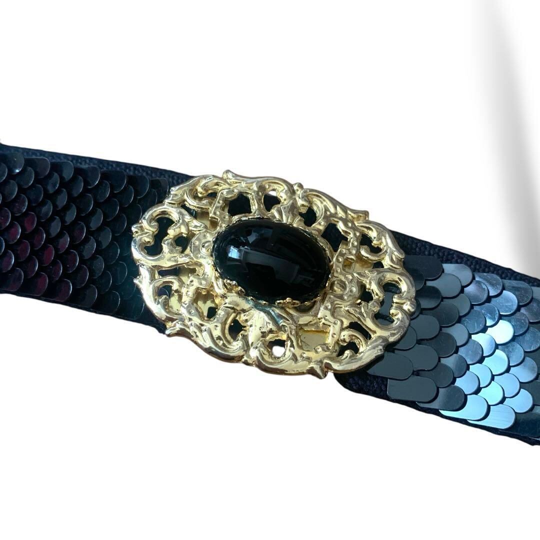 ◎スパンコールベルト ゴールド&ブラックオーバルバックル ゴムベルト ビンテージ