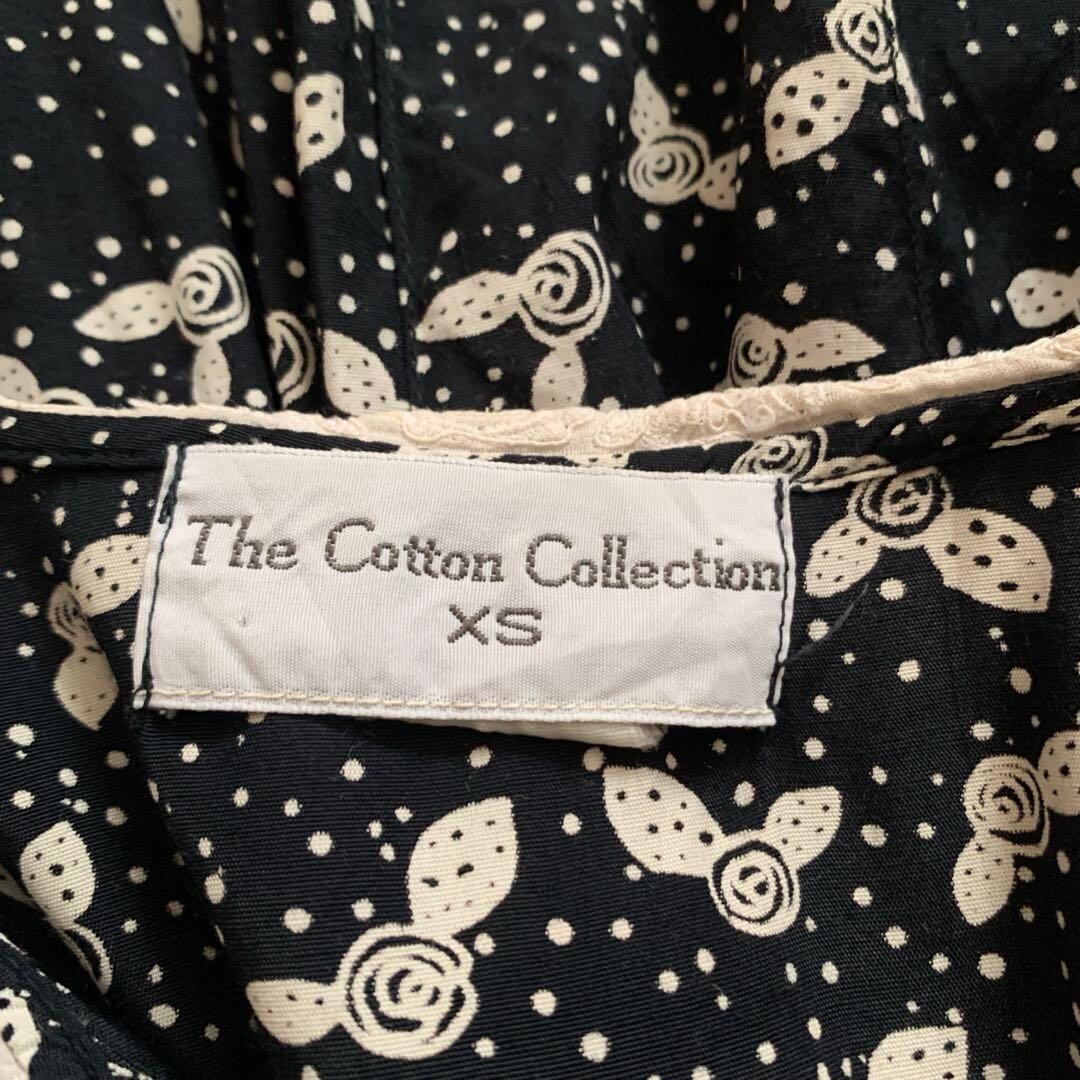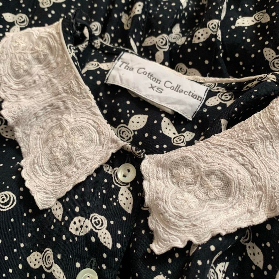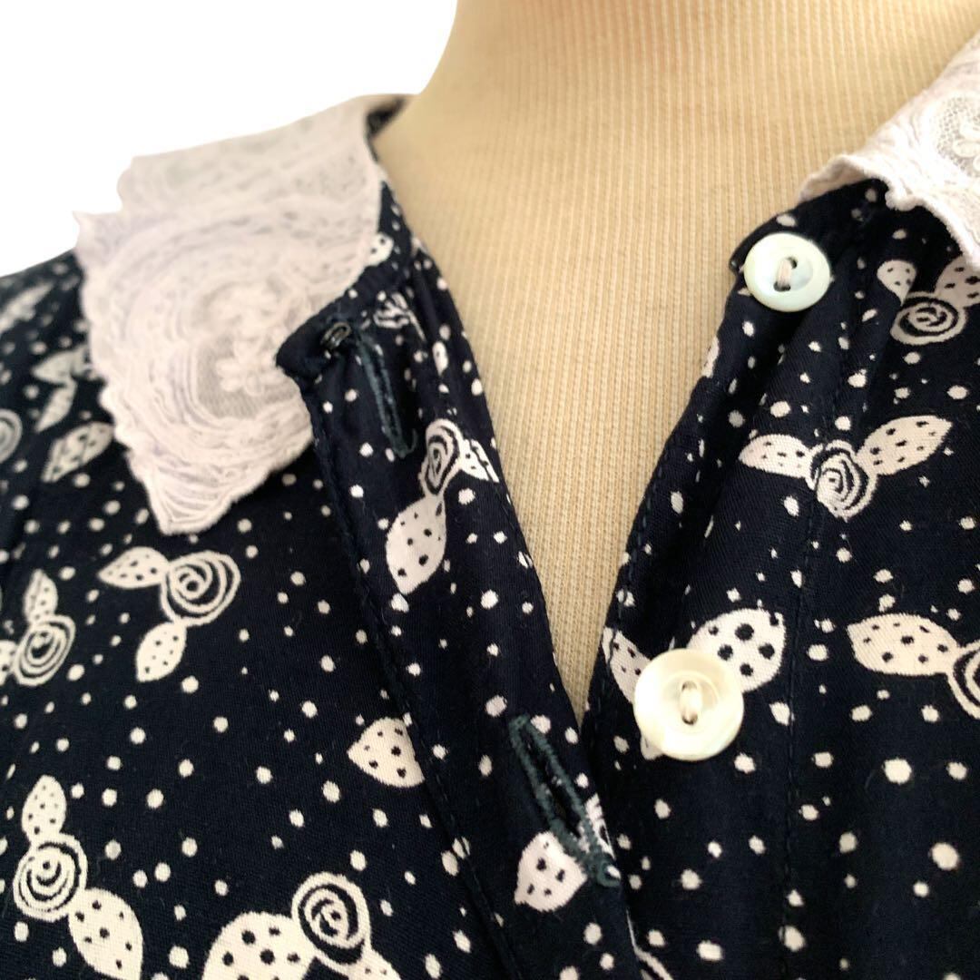 ◎USA古着 クラシック 白レースえり ネイビー総柄レトロワンピース ビンテージ