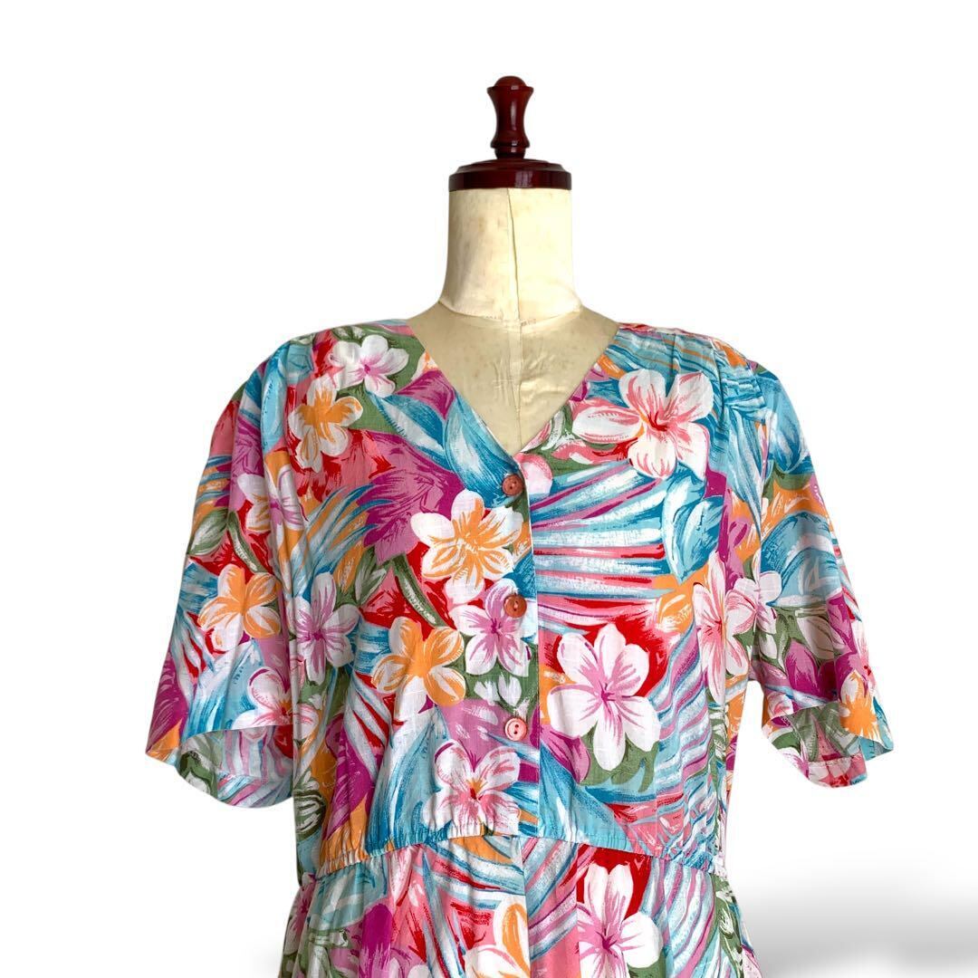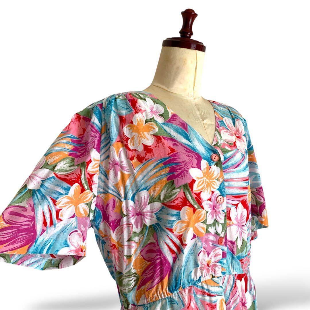 カラフルな花柄がまるでリゾートホテルのロビーみたいな華やかワンピースよ!