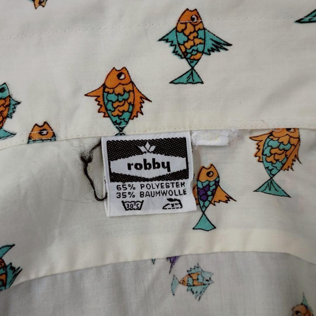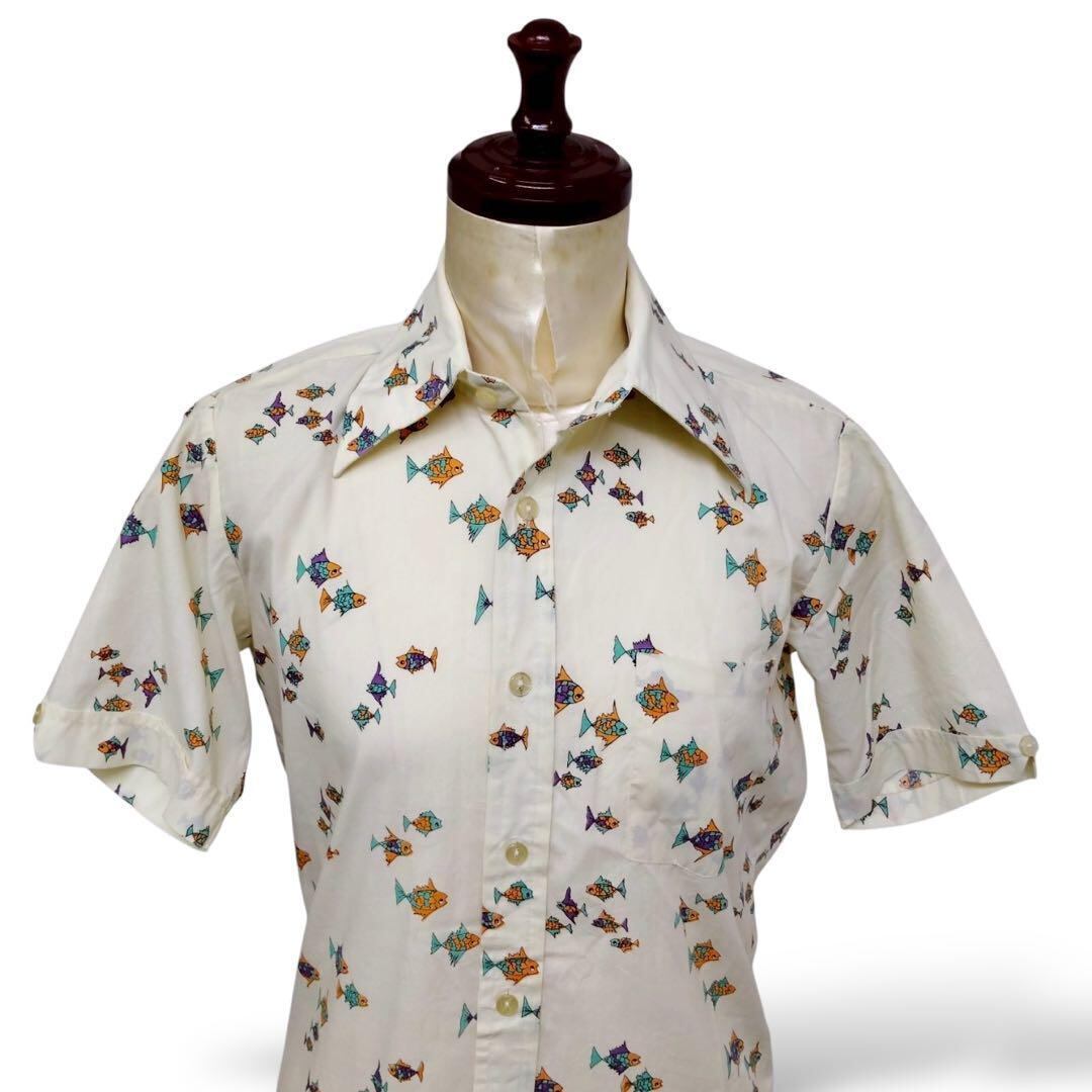 ポップな魚たちがちりばめられたユーロヴィンテージのシャツよ。