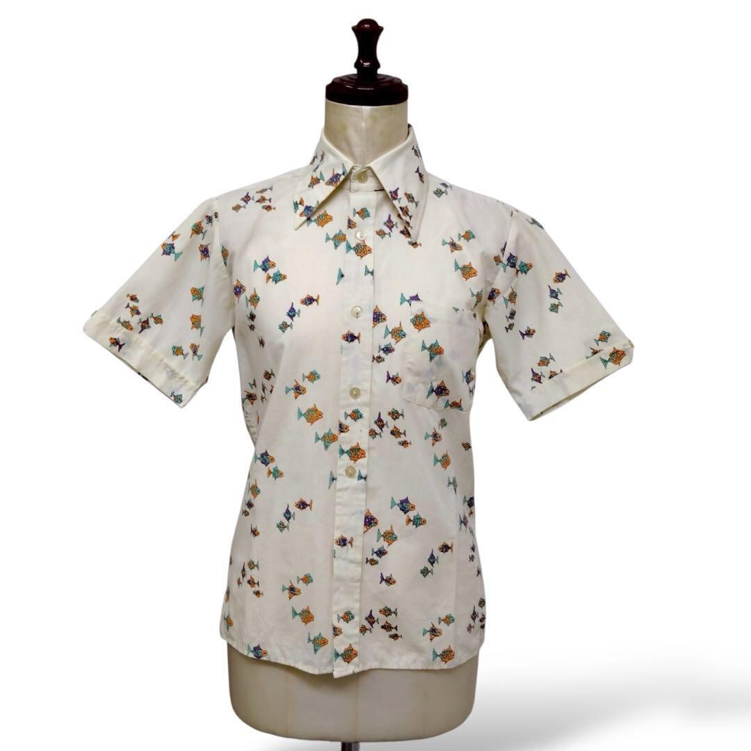 ◎ユーロ古着 お魚柄ブラウス ユニセックス カラフル レトロ ビンテージ