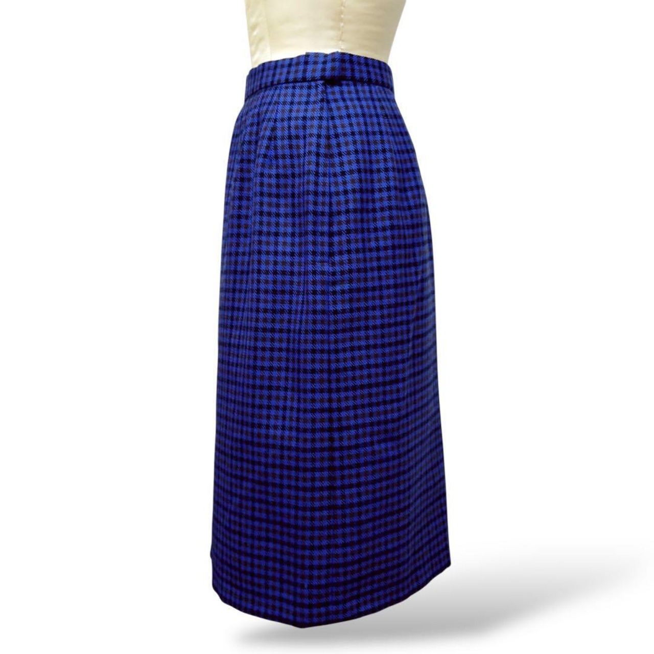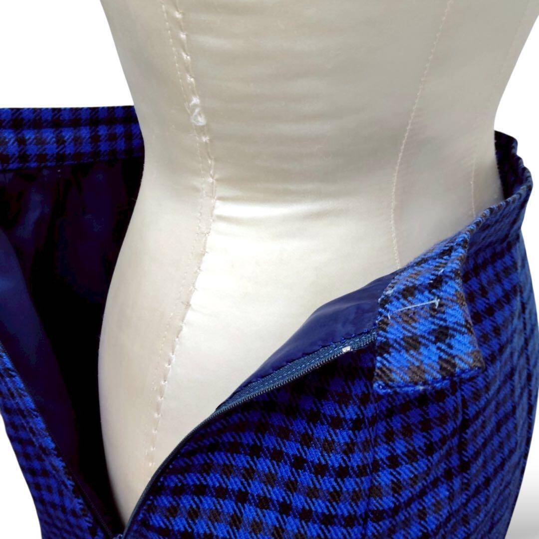 知的で落ち着いたブルーチェックのレトロなタイトスカートの登場よ!