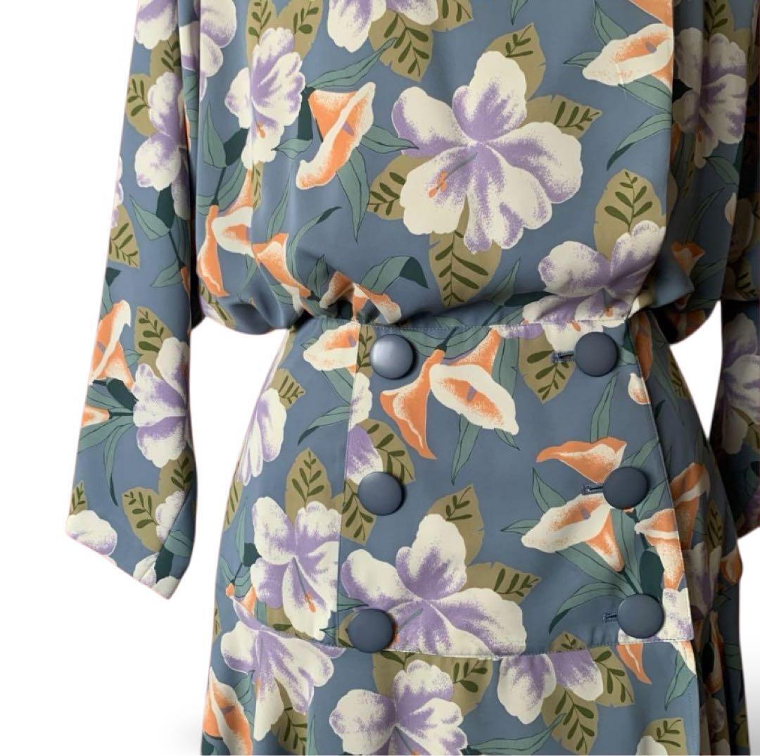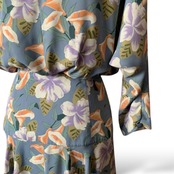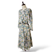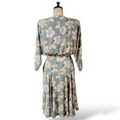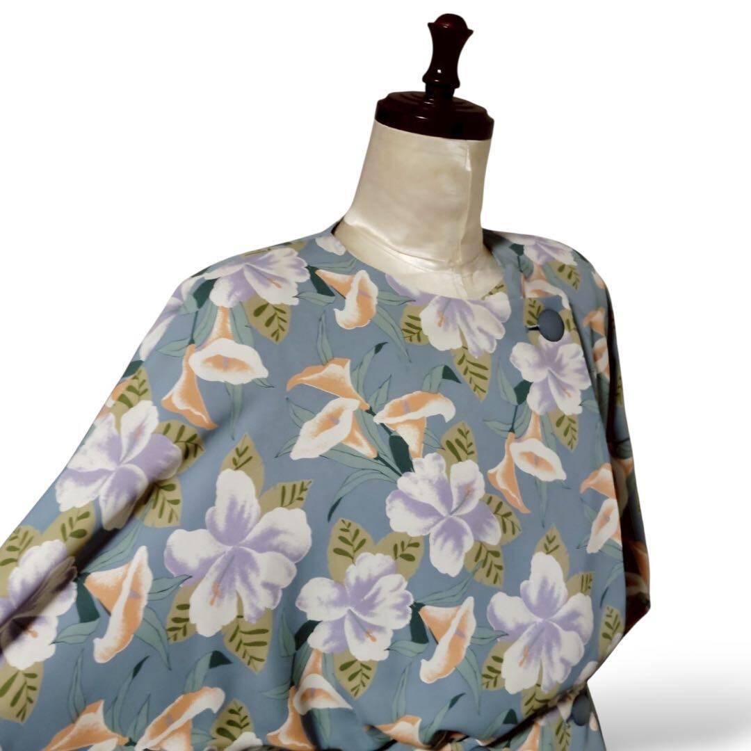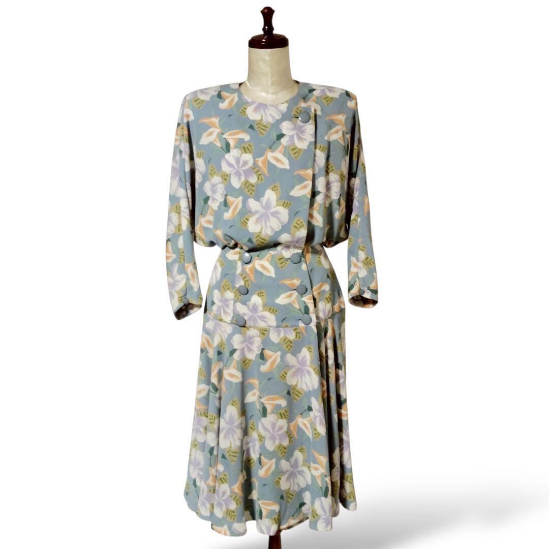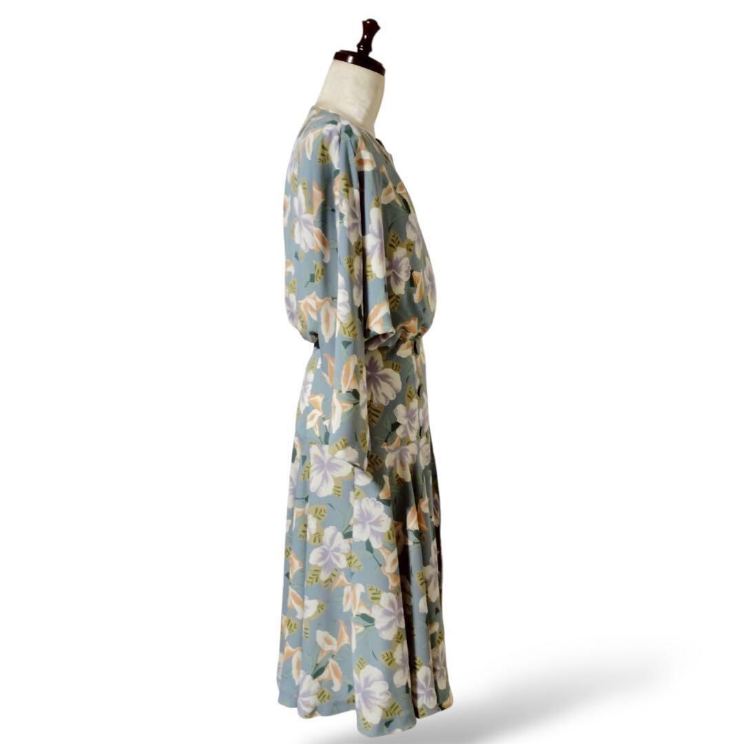 淡いグリーン地に咲いたお花柄、ふわっと広がるシルエットは着るだけで美人オーラ放出!