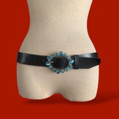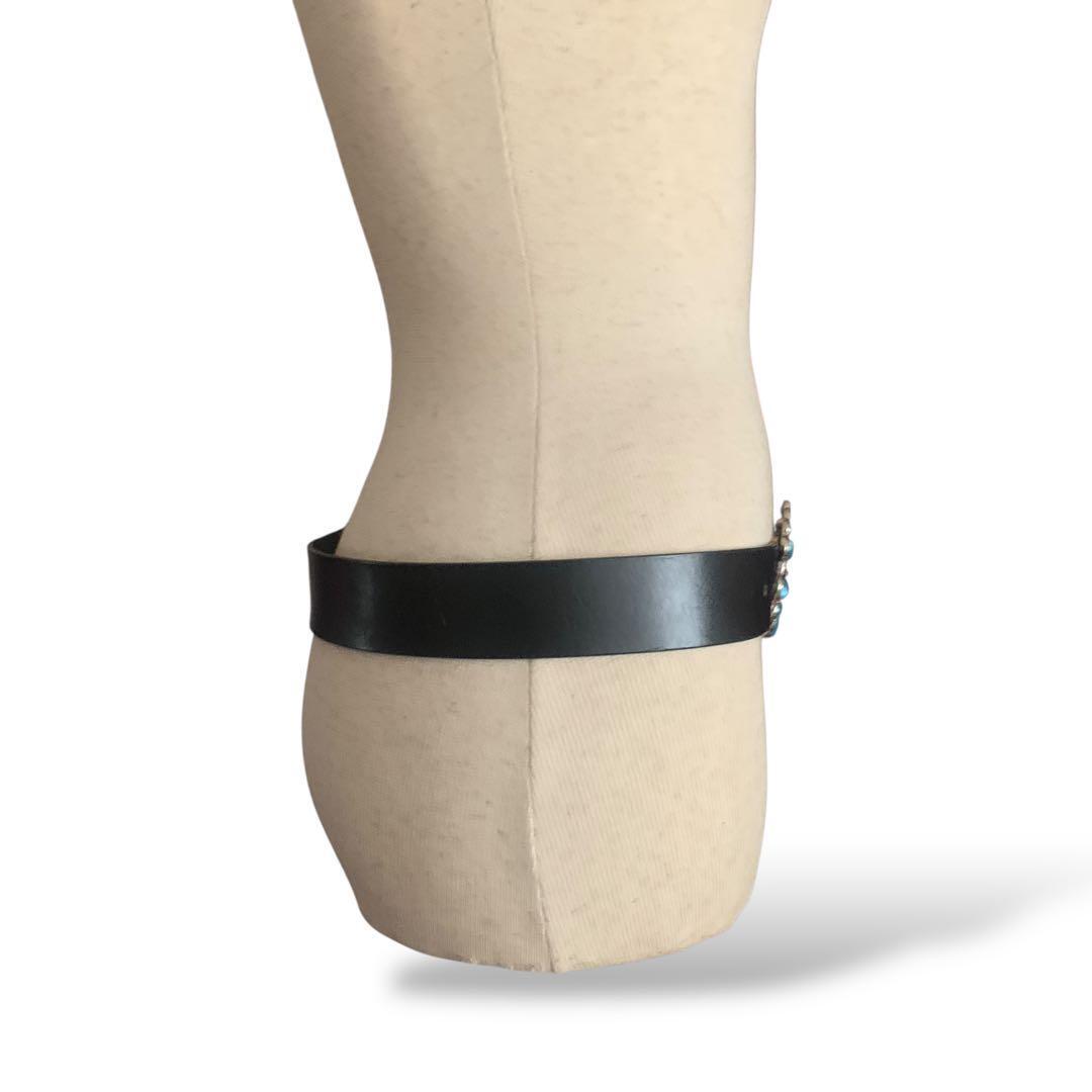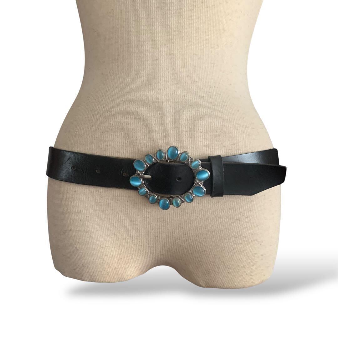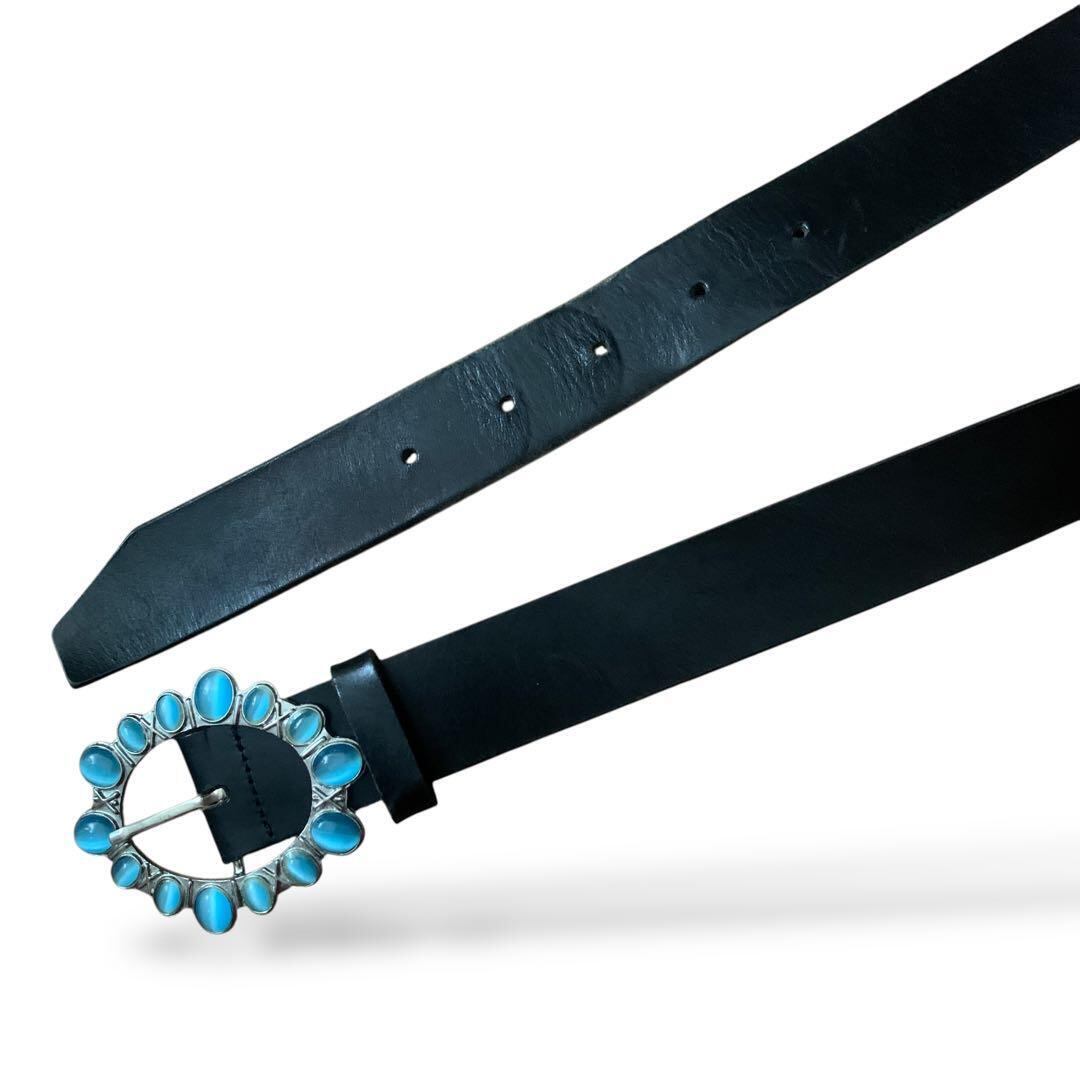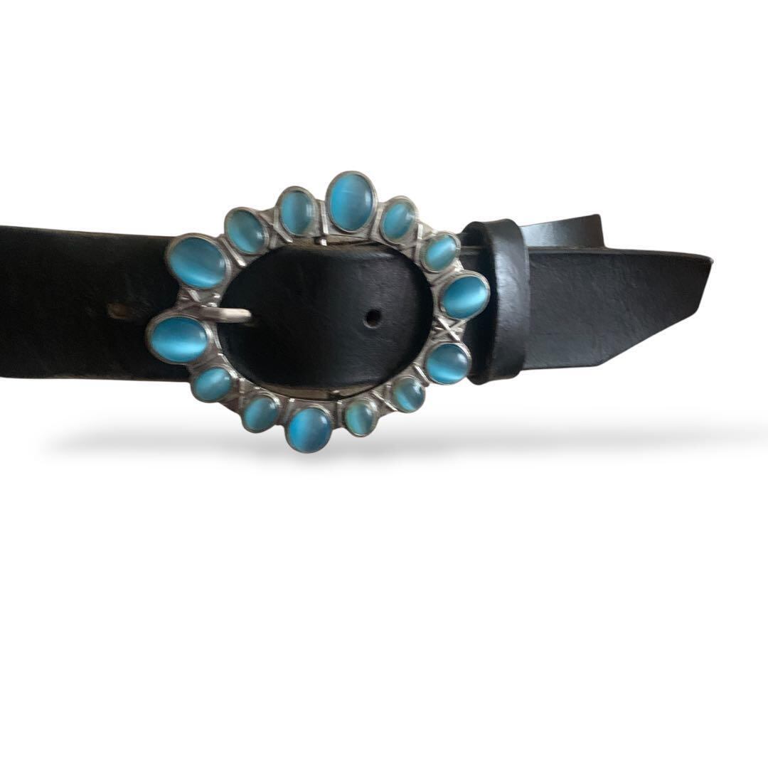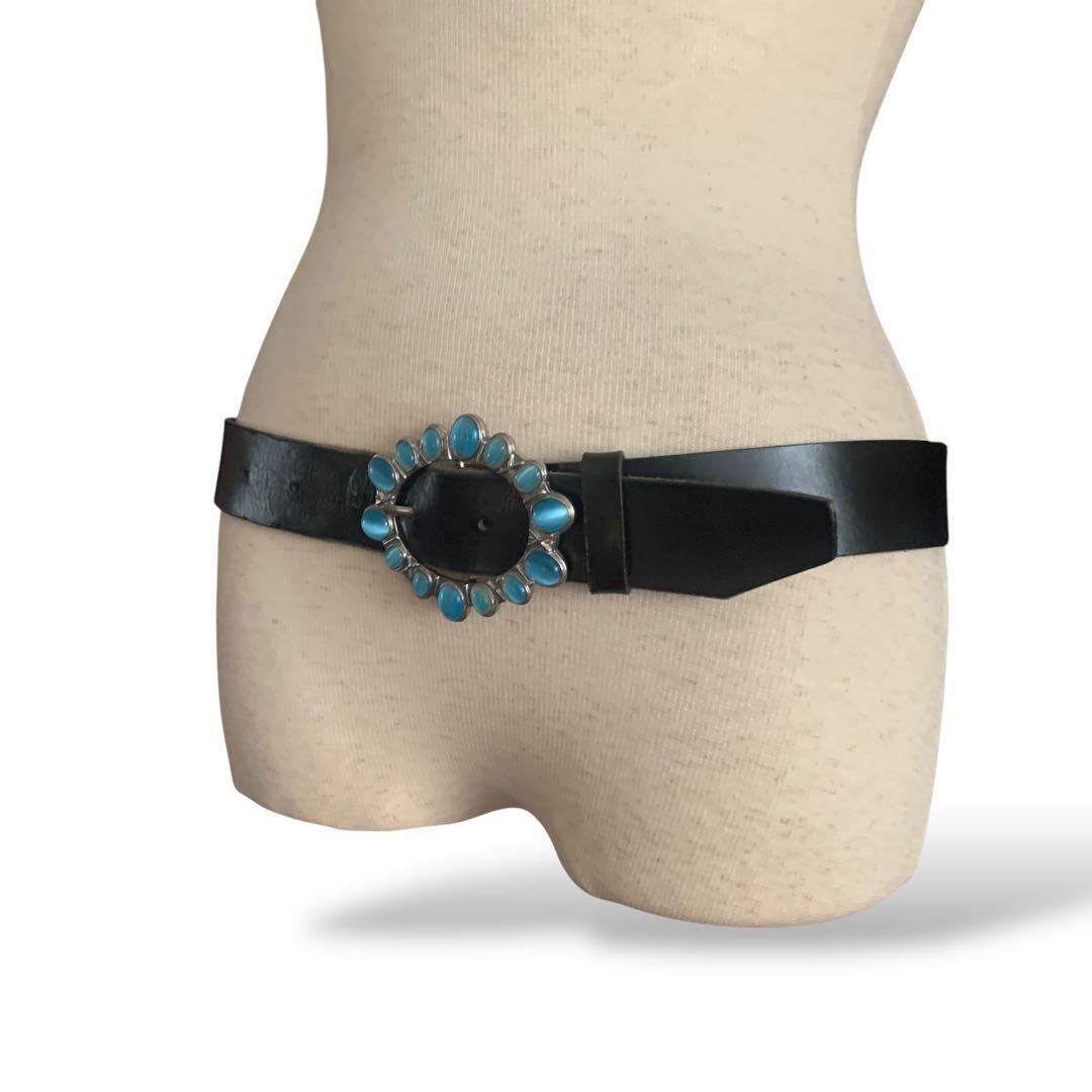 ◎ターコイズストーンバックル 太ベルト 黒 レトロ y2k イタリア製