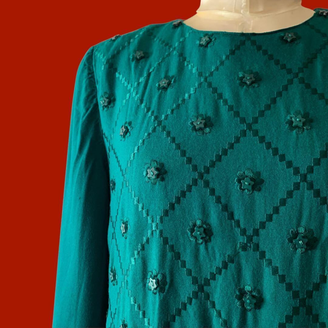 星のビーズがキラキラと、まるで夜空をまとったみたいなエメラルドグリーン、上品さと可愛さが一度に手に入る贅沢デザインワンピースよ。