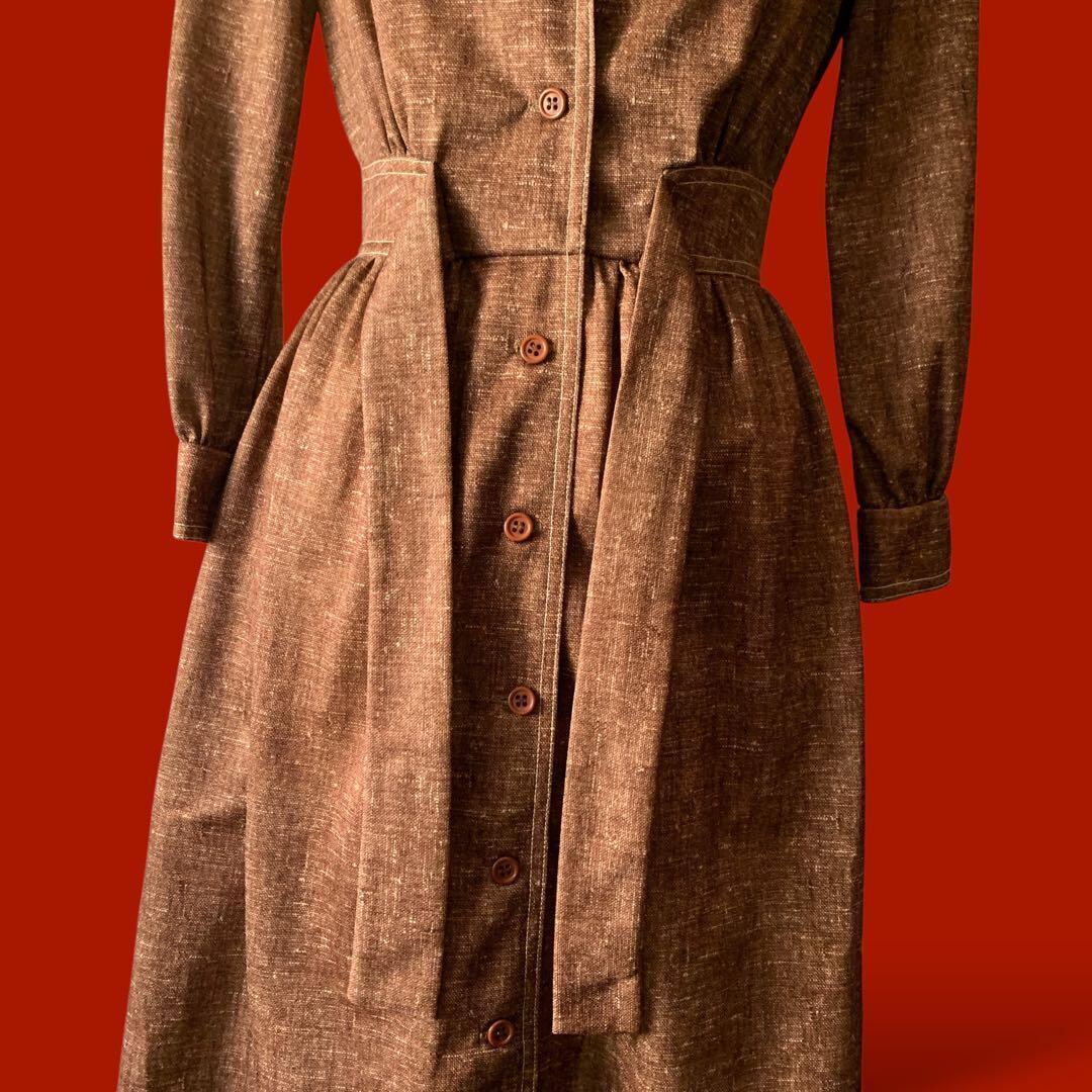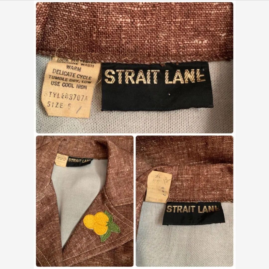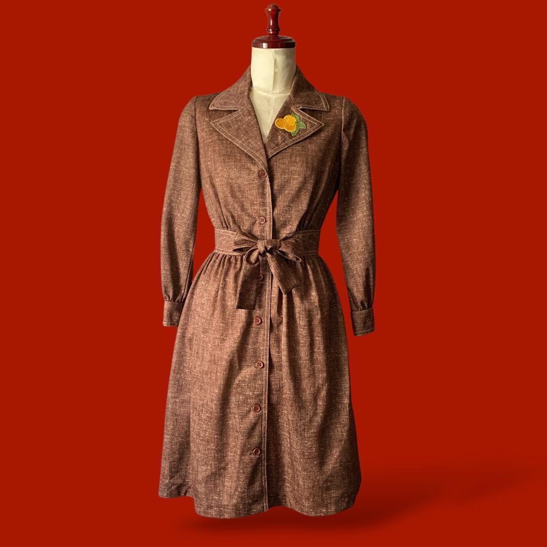 ◎70sヴィンテージワンピース レトロ×美ライン フルーツワッペン開襟 長袖