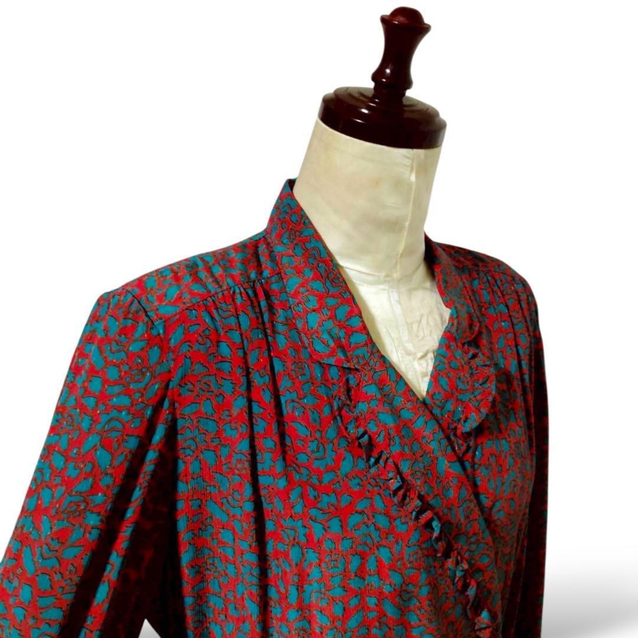襟元のさりげないフリルと、上品な総柄がもうたまらなくレトロなの~。