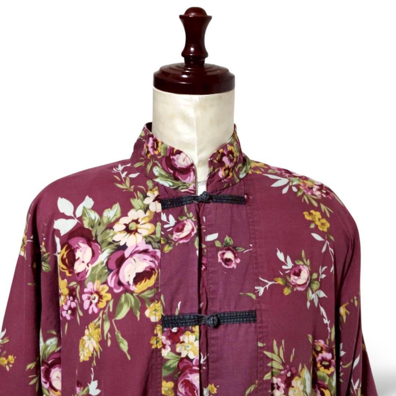 落ち着いたパープルに洒落たブラック中華ボタン。袖もゆったり、サラッと華やか&こなれ感バチバチ。