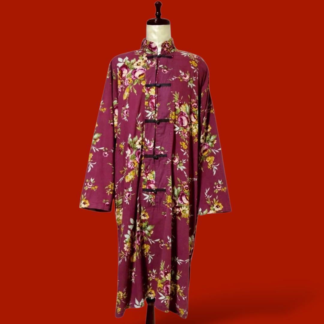 レトロで上品なチャイナ風デザインに、美しいフラワーモチーフがたっぷり咲いた、唯一無二のロングワンピースよ〜